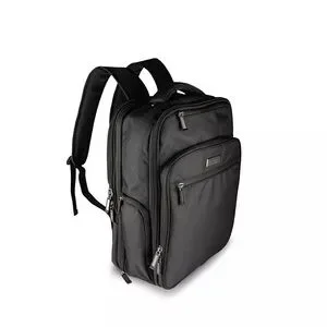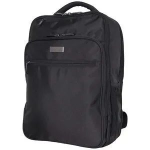 Front exterior also consists of an easy access zipper pocket and gusseted zip down pocket with a padded tablet pocket and an RFID protected business organizer