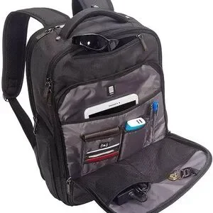 Rear computer compartment is padded to hold and protect a laptop