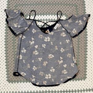 Kaileigh Navy Off Shoulder Floral Top, Women Sz S, Back Criss Cross Design