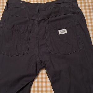 EUC. 28” inseam. Dark gray pants with gathered ankles with zippers. Very comfortable and practical with 2 deep front pockets. One zippered section on pocket. 2 roomy back pockets. Cotton with a little spandex