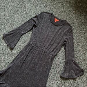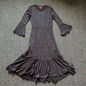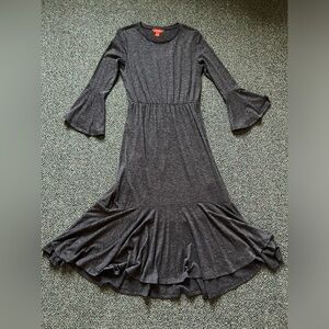 JOE FRESH Grey Long-Sleeve Jersey Stretch Modest Dress Ruffle Hem Bell Sleeve S