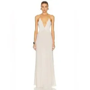 Revolve Helsa women’s size S sheer deep v long slip dress in cream