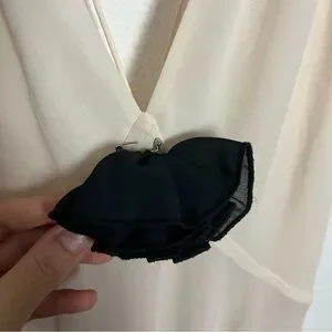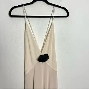 Revolve Helsa Sheer Deep V Long Slip Dress Cream Maxi with Rosette Flower Small