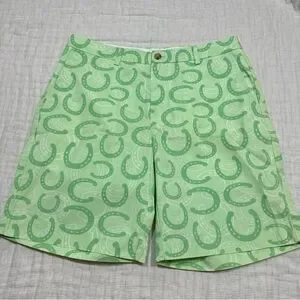 Vineyard Vines Kentucky Derby Breaker Shorts Green Lucky Horseshoe Men's Size 35