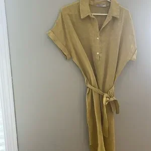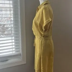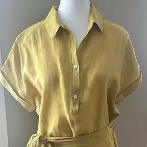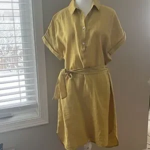 Marisa & Marie Linen Yellow Short Sleeve Mid Length Dress with Waist String