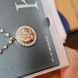 Lovely, new, Mixit Luxe Initial K Sparkling Chain With Earrings. Silver tone. Jewelry has small sparkly stones.