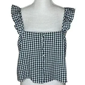 ❤️ MADEWELL Ruffle-Strap Cami Top in Gingham Check - Size 12