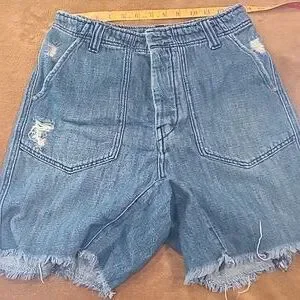 Free People Medium Wash Blue Button Fly High Rise Baggy Shorts Women's Size 4