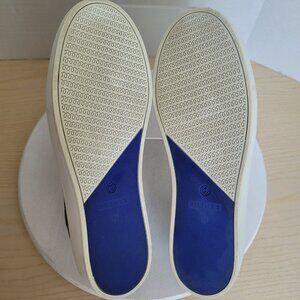 Pre-owned, in good condition. No rips, holes, stains, or odors. Clean. Some very light scuffs to the white rubber.