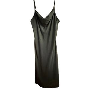 Slip Dress Large Womens Drape Neck Black Y2K Fairy Goth 90s Style Minimalist