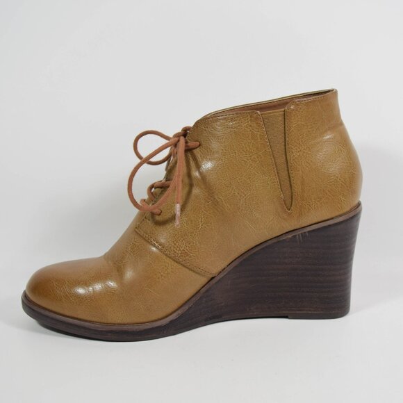 Torrid Cognac Tan Faux Leather Lace Up Wedge Ankle Booties Boots Sz 11.5