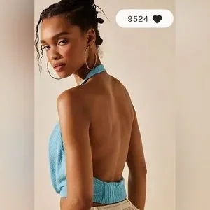 FREE PEOPLE Iris Open Back Knit Halter Sweater In Splash (Sky Blue) Sz M/L ✨NWT✨