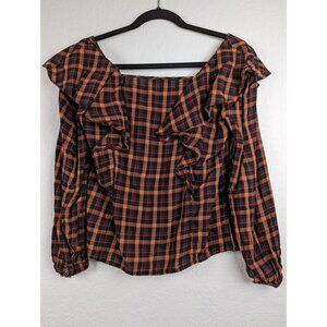 Madewell Plaid Ruffled Square-Neck Cop Top Long Sleeve Womens Size XS