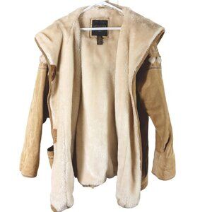 Venezia Leathers Womens Genuine Leather Suede Coat Sherpa Lined Hooded Sz 14/16