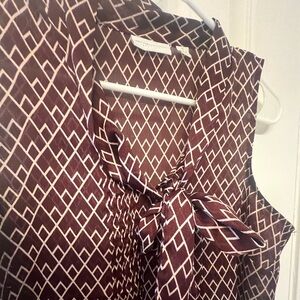 New York and Company brown and white geometric tie neck sleeveless top, size XS. Condition is previously worn.