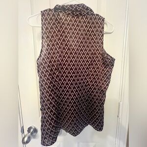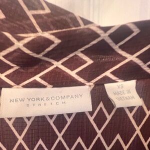 New York & Company brown and white geometric tie neck sleeveless top, size XS