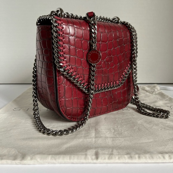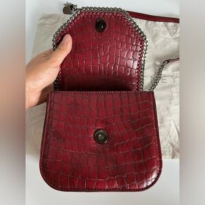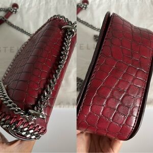 Stella McCartney Embossed Crocodile Effect Falabella Box Shoulder Bag Dark Red