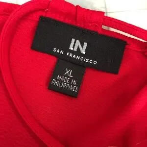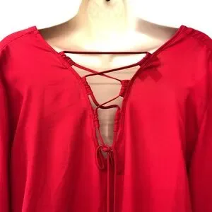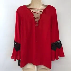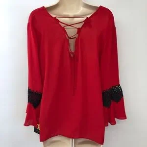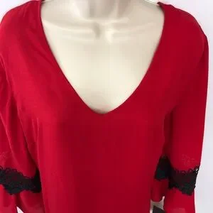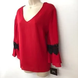 NWT I.N. San Franscisco Red V Neck Top Black Lace Trim