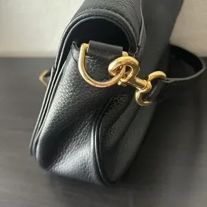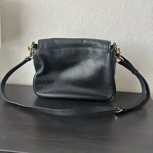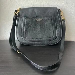 Marc Jacobs Medium Crossbody Purse. Has a bend in the side (which you can see in the photo) and a little wear on the gold where the strap connects. Other than that it’s in GOOD condition!!! The inside is very clean!