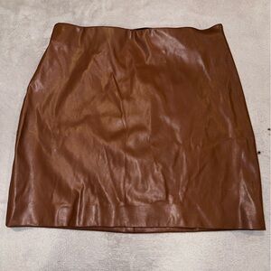 Step into style with this versatile brown vegan leather skirt, perfect for any season! The elastic waistband ensures a comfortable fit for all-day wear. Whether you're dressing up for a night out or keeping it casual for a day at the office, this skirt is a must-have for your wardrobe. It's in excellent condition and ready to make a statement wherever you go!