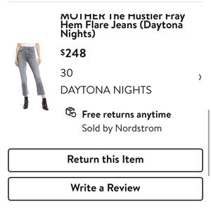 ๐ฉถNWT MOTHER DENIM HUSTLER FRAY HEM FLARE JEANS (Daytona Nights) 30