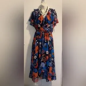 Lane Bryant Navy Floral Ruffle Faux Wrap Fit & Flare Midi Dress Women’s 22