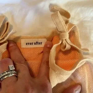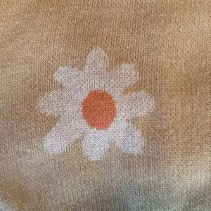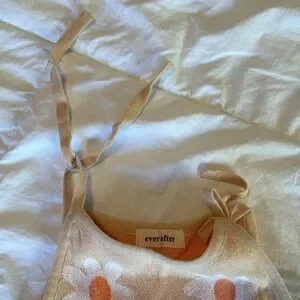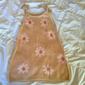 ADORABLE knit daisy dress from a small shop . The color is a peach with white flower petals and an orange center. Worn twice and in EUC. Shoulder straps are adjustable too!
