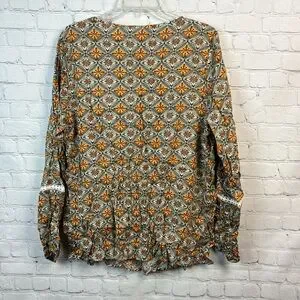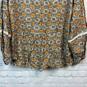 Cute Lightweight Bohemian Print Lantern Sleeve Top by BloomChic. Size 1X