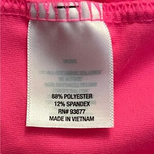 Garment is still in great condition with no rips or staines. Made of polyester and spandex and machine washable. If you have any questions please reach out. I am open to offers!