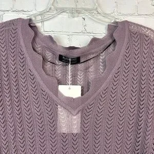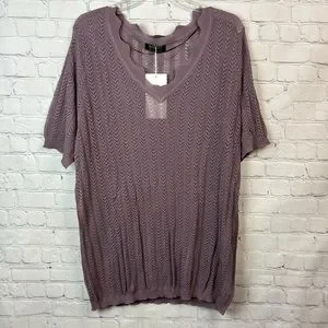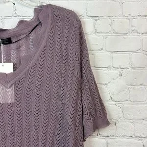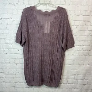 Cute Purple Geometric Sheer V Neck Knit Top by BloomChic. Size 2X