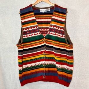 Vtg highgate Ltd II Multicolor Striped Western Knit Button front vest sweater 2X