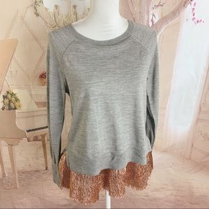 J Crew Crew Layered Lame Fringe Sweatshirt