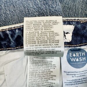 Color block design with medium wash and dark stripe on side