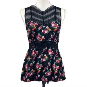 FREE PEOPLE | Black , boho,Floral,Lace, Peplum Top, sz small
