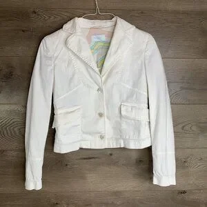 Emilio Pucci Firenze Jacket Womans Size 10 White Denim Stretch Made in Italy
