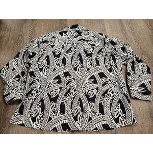Foxcroft Black White Shaped Fit Women's Button 3/4 Sleeve Blouse Shirt Plus 20W