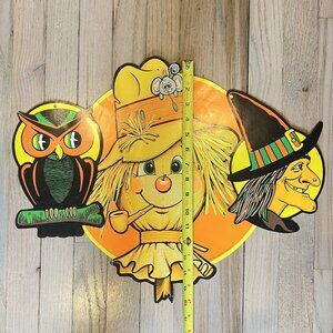 Beistle Co Large Halloween Paper Cutout Lot Of 3 Scarecrow Witch Owl Damaged