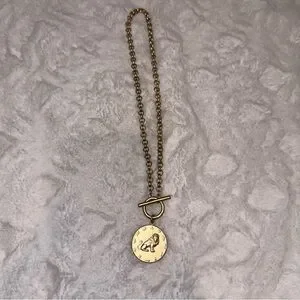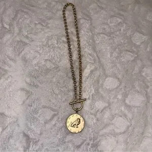 KEYWORDS: Leo necklace, zodiac jewelry, gold-tone, bar closure, astrology accessory, Leo sign pendant, adjustable necklace, gold-tone metal, astrology enthusiasts, personalized gift, zodiac-themed, stylish, trendy, chic, fashionable, celestial jewelry, horoscope, star sign, elegant, unique, statement piece, high-quality, never worn, like new, excellent condition, fashion-forward, fashionista, fashion lover, fashion blogger, fashion influencer, outfit inspiration, style inspiration, versatile, timeless, modern, sleek, everyday wear, special occasion, gift idea, boutique jewelry, designer-inspired, celestial fashion, horoscope fashion, stylish accessory, personalized jewelry, unique closure, contemporary design, Leo emblem, astrology gift.