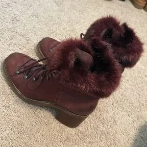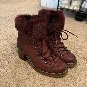 Steve Madden Huck Burgundy Leather Faux Fur Lace-Up Boots