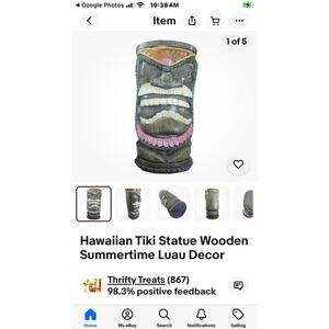 Hawaiian Tiki Statue Wooden Luau Bar Decor 4.5" Wide by 8" Tall. In great condition.