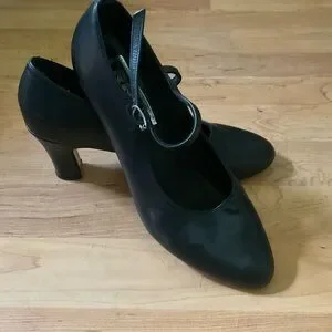 “FREED OF LONDON” Professional Dance/ Ballroom Black Strap Heeled Shoes
