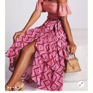 Banjanan Geo Wrap Midi Skirt size Medium from Anthropologie. Small tear in wrap as seen in last picture but was purchased this way.