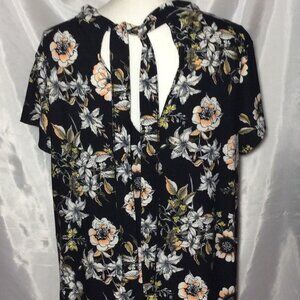 Sauci Women Black Floral Multi- Color Flare Dress Size L Short Sleeve Pullover