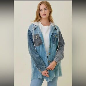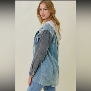 360. Hoodie Jacket Corduroy Shacket Washed Color block Blue Mix S, M & L NEW Item NWT