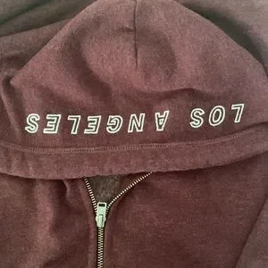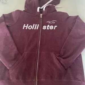 Maroon colour Hollister zip up hoodie. In excellent condition, hardly used. Attached hood with drawstrings. Size is a boys Large see photo of size tag