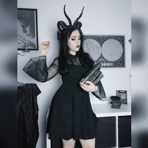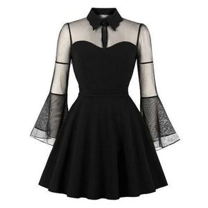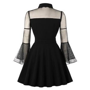 The Gossamer Bat Dress sheer illusion wednesday addams bat collar bell sleeve XL