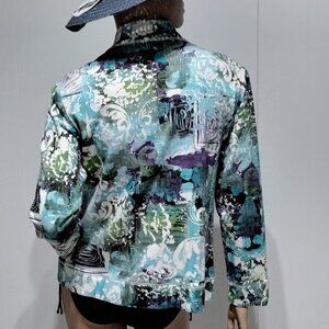 Additions by Chico's Funky Floral Abstract multi-color Zip Light Jacket Size 2