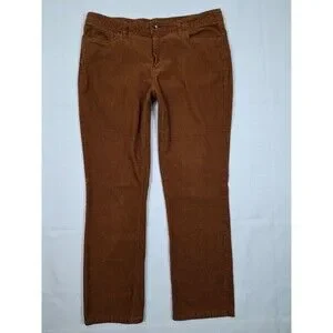 Elevate your casual wardrobe with these stylish brown corduroy pants from Lands' End. These pants come in a women's size 16 with a straight leg design and a high-rise waist size of 35 inches. The pants feature a button closure and 5 pockets, making them both practical and fashionable. The cotton blend material and machine washable garment care make them easy to maintain. The pants also have a solid pattern, logo accents, and a fall/autumn theme, which make them perfect for the winter and fall seasons. Add these pants to your wardrobe for a comfortable yet chic look.