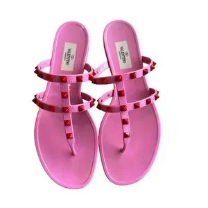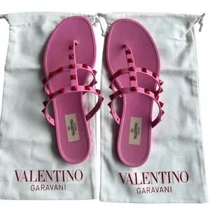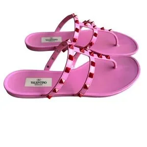Authentic Rockstud Low Thong Sandals. Minor lifting of pvc at the strap. See up close photo. You don’t notice it when wearing the sandal. Magenta pink and comes with dust bags.