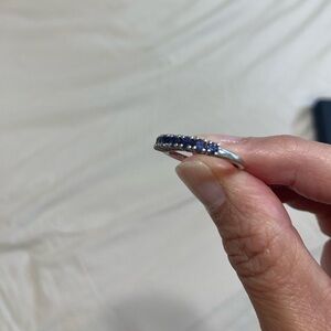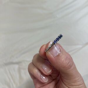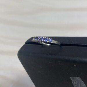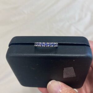 Beautiful, 925 stamped Sterling silver ring. Chanel Amethyst gems. . No damage, it’s been worn but no loose stones they’re secure. no noticeable tarnish. It’s on my middle finger so it’s a 7. Makes a nice stacking ring. Makes a nice promise or engagement ring. The stones are a stunning vibrant purple. I just updated the photos.